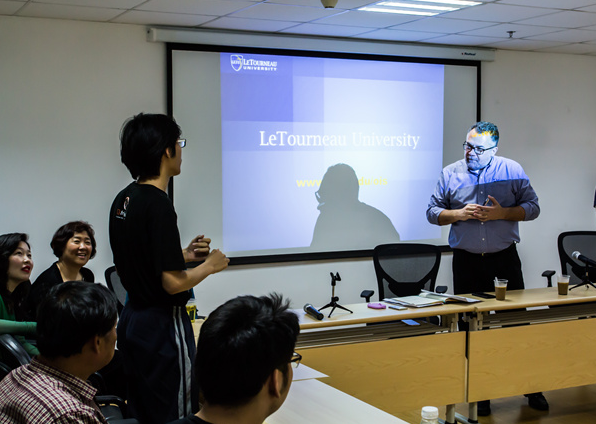 下午,在航空维修系的组织下,Frazier先生一行在学生事务中心4楼会议室与我校2017级机电设备维修专业中美合作班首批39名新生和家长见面互动。见面会由维修系副主任高春梅主持。罗玉梅主任向学生和家长介绍了该合作办学项目的培养目标和教学安排,并详细介绍了美国飞机维修执照FAA证书的考核模式与课程体系。Frazier先生则通过PPT和视频生动详细地介绍了莱托诺大学的具体概况、办学思路、课程设置以及学习目标等,随后他以问答互动的方式开始了与学生和家长的热烈交流。Frazier先生认真解答了学生与家长们关心的未来职业发展、学费、住宿、地理位置、交通等问题,并表示莱托诺是一所重视投资回报的学校。学生们大胆地运用英语与Frazier先生一行开展交流互动,气氛非常热烈。
