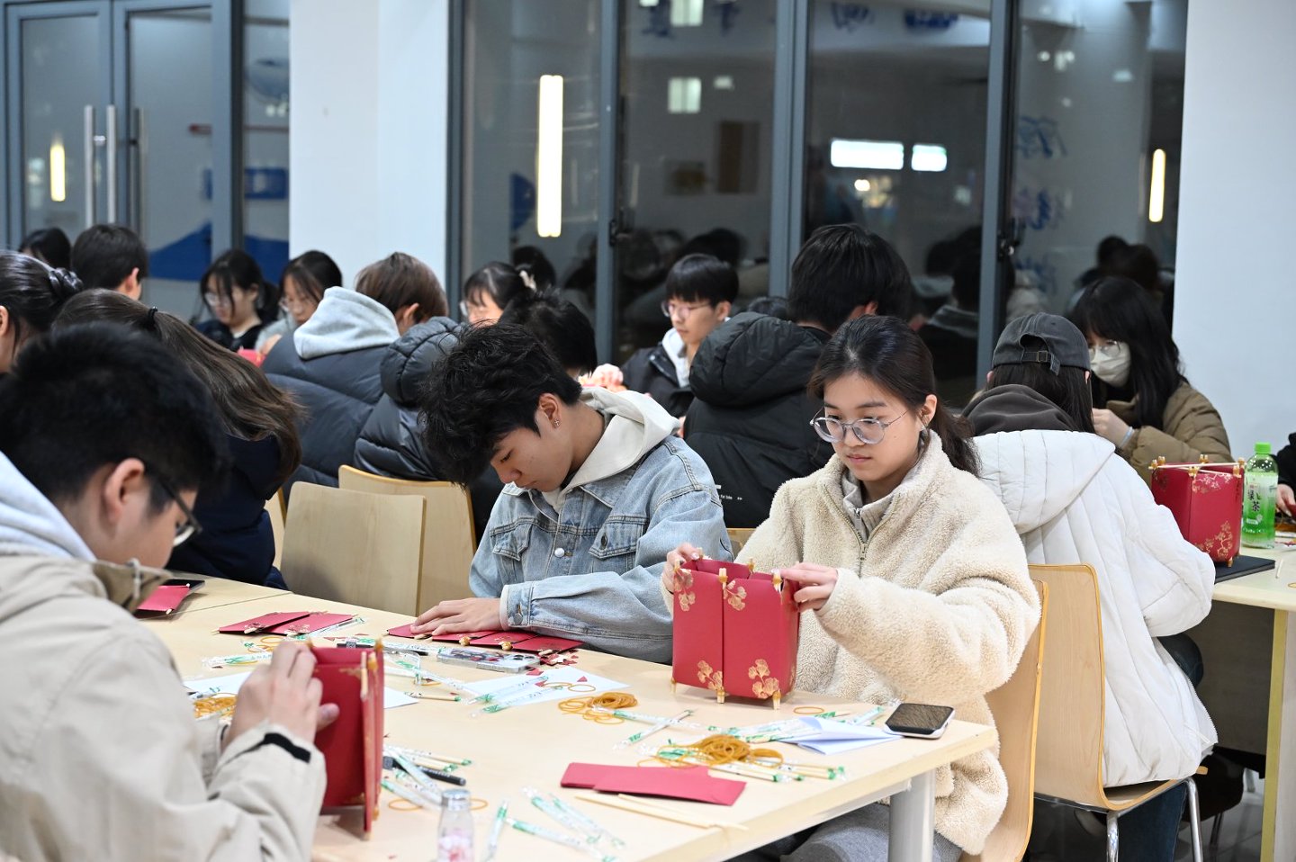 活动现场精彩纷呈:灯笼DIY环节里,同学们跟着教程动手创作,在悉心指导下,一盏盏承载着祝福、创意满满的灯笼在手中成型。“红包祝福漂流”随机抽选幸运者,朗读搭配即兴表演,现场笑声不断;“灯笼暗语猜猜猜”小组比拼脑力,灯谜中藏着民俗典故、诗词文化,大家绞尽脑汁、通力合作,解谜成功的那一刻,喜悦与成就感洋溢在每个人的脸上。