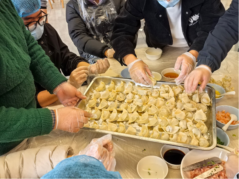 最后,师生们将包好的馄饨交由食堂工作人员统一煮制,指导老师同步讲解煮制过程中的火候把控、时间掌握等关键要点,让大家完整掌握从食材处理到成品出锅的全流程技艺。当热气腾腾的馄饨陆续端上桌,师生们品尝着自己亲手制作的劳动成果,脸上洋溢着满满的成就感与幸福感,现场氛围温馨而热烈。