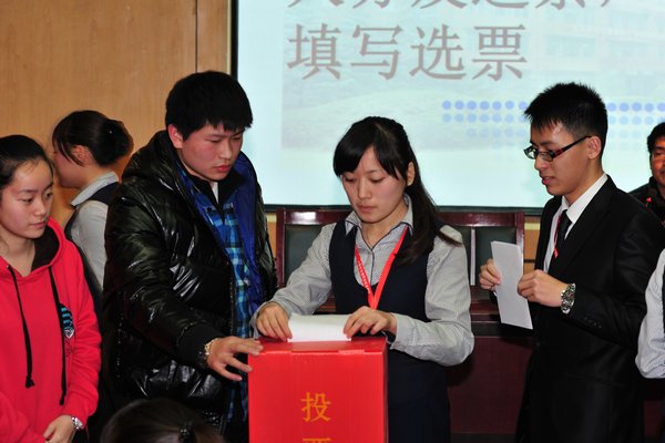 在周凌之宣读完本次学代会议程、候选人名单和选举方法后,23名候选人依次登台演说。通过半年来的锻炼和学习,他们已经适应了学生会的工作环境。此刻,这些优秀学生怀揣着一颗为学生会奉献、为同学服务的心,阐述了各自将如何通过自身的努力与付出使学生会工作更上一层楼的理想。他们的演说虽然没有华丽的语言,但充满着真诚的信念和慷慨激扬的语调展现了他们坚定、积极、乐观的品格,传达出“学生会的未来后继有人”的积极信号,赢得了代表们热烈的掌声。