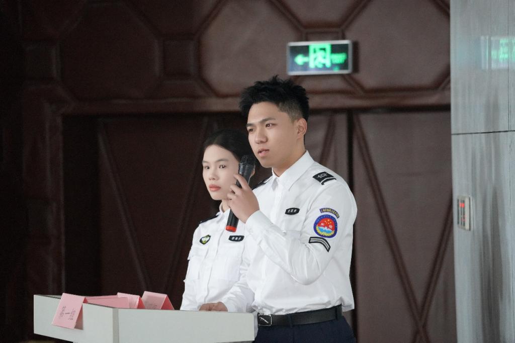 决赛现场气氛热烈,各参赛队伍依次亮相。本次晋级决赛的五支代表队实力雄厚,均是从激烈的初赛选拔中脱颖而出的佼佼者,每支队伍由两名决赛选手搭档组成。选手们身着整齐制服,精神抖擞地自报家门,他们铿锵有力的参赛口号响彻全场,充分展现出民航安检人应有的协作精神、专业自信与青春风采,为这场理论知识的巅峰对决奏响激昂序曲。