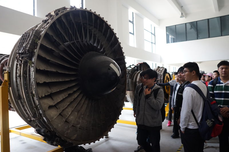 实践出真知,为了让同学们更好地理解我们维修系的特点,也为了让同学们对之后的学习生活有更加清晰而明确的认识,在讲座过后刘老师还带领同学们参观了维修系的实训教室。第一次近距离看到飞机的内部构造,看到了飞机的各种核心元件,同学们不由得发出了阵阵的赞叹声。