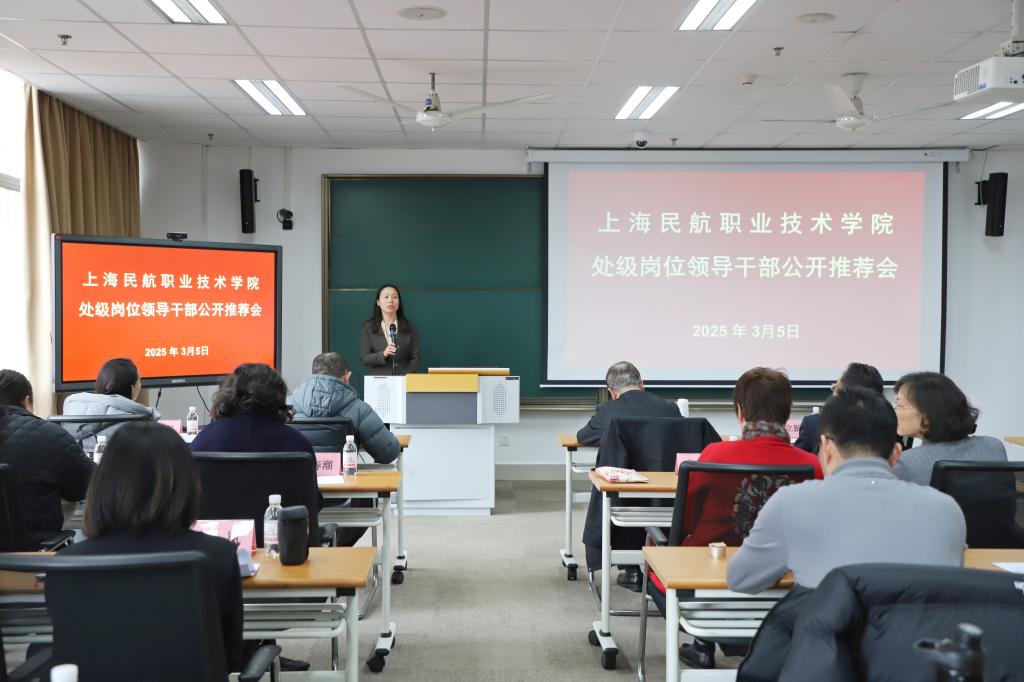 为进一步优化处级领导干部选拔任用工作程序,激发学院教职工干事创业热情,3月5日下午13:30,学院在徐汇校区1号楼605室召开了“飞机制造与维修学院副院长等处级岗位领导干部公开推荐会”。此次公开推荐会由党委办公室主任曹维平主持,学院院长王立新出席会议并就领导干部选拔工作提出要求,副院长孙暄、纪委书记姚力军现场观摩自荐演讲,全体处级领导干部、学术委员会委员、推荐岗位所在党总支委员参加会议并对自荐人员进行评价...